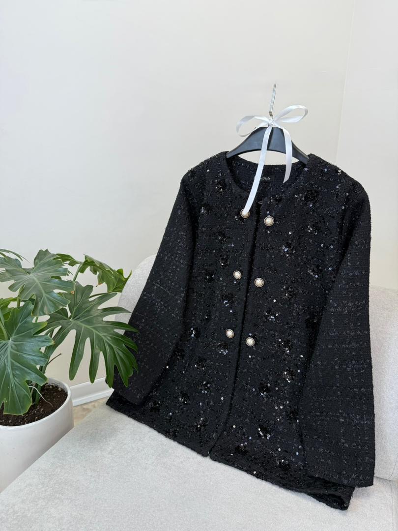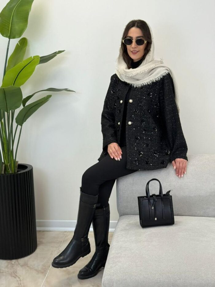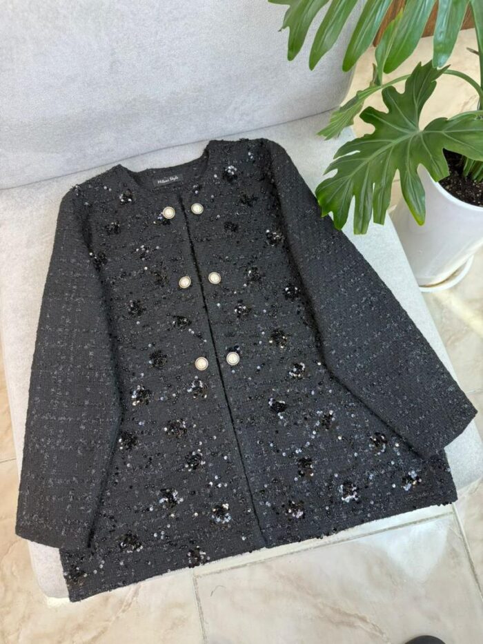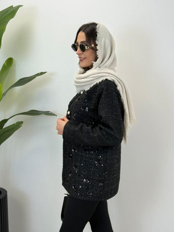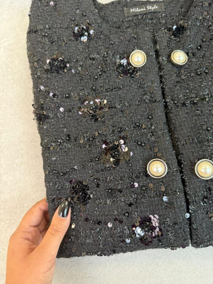 جنس جلوی کت : شانل ملیله دوزی و پولک دوزی